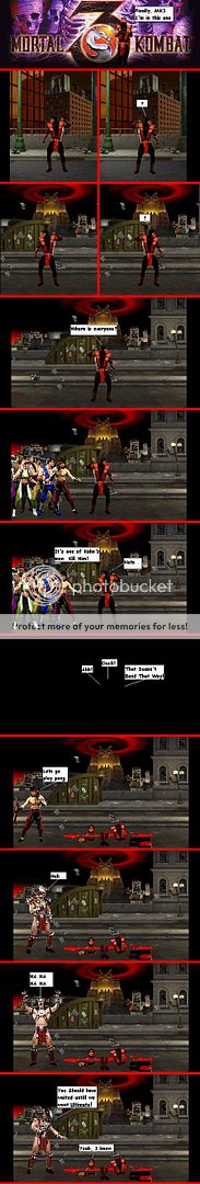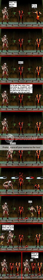 | Sektor wrote: | | Part 1: Ugly speech bubbles and font, a plain black background (woohoo), bad looking blood and a bad joke. |