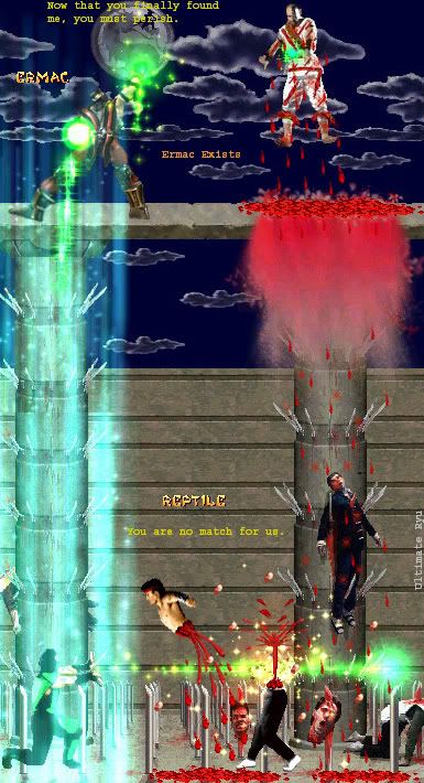 I used Photoshop to create these pics. As for the Ermac sprite in the first pic, I just cut it out of a MKD screenshot and then manually added the feet(boots).