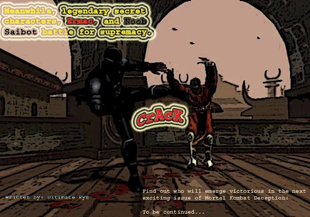 | UltimateRyu wrote: | | I used Photoshop to create these pics. As for the Ermac sprite in the first pic, I just cut it out of a MKD screenshot and then manually added the feet(boots). | what effects or brushes did you use? _________________ <center>Mortal Kombat Informer