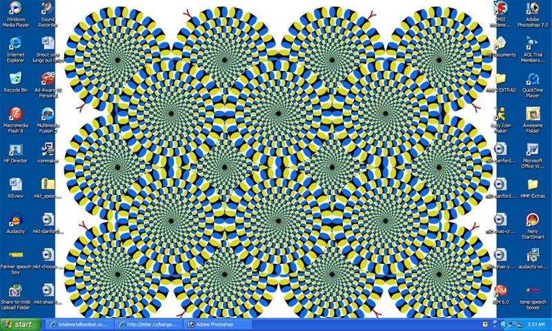 HAHAHA! DUDE!! I love your wallpaper bloodyshadow! I was like "WTF?! Those circles were moving!"